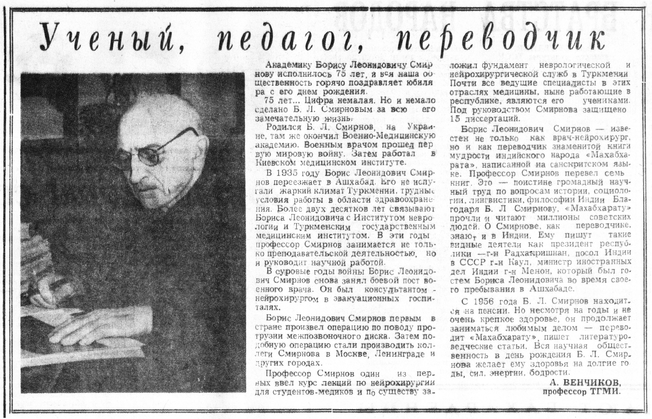 Туркм. искра, 1966, 15 дек., № 289, с. 3